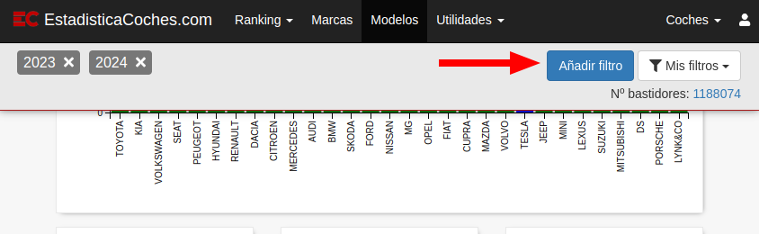 Para filtrar la información por municipios y/o códigos postales es necesario filtrar primero por la provincia. Esto se realiza mediante el botón "Añadir filtro" en la sección de filtros: